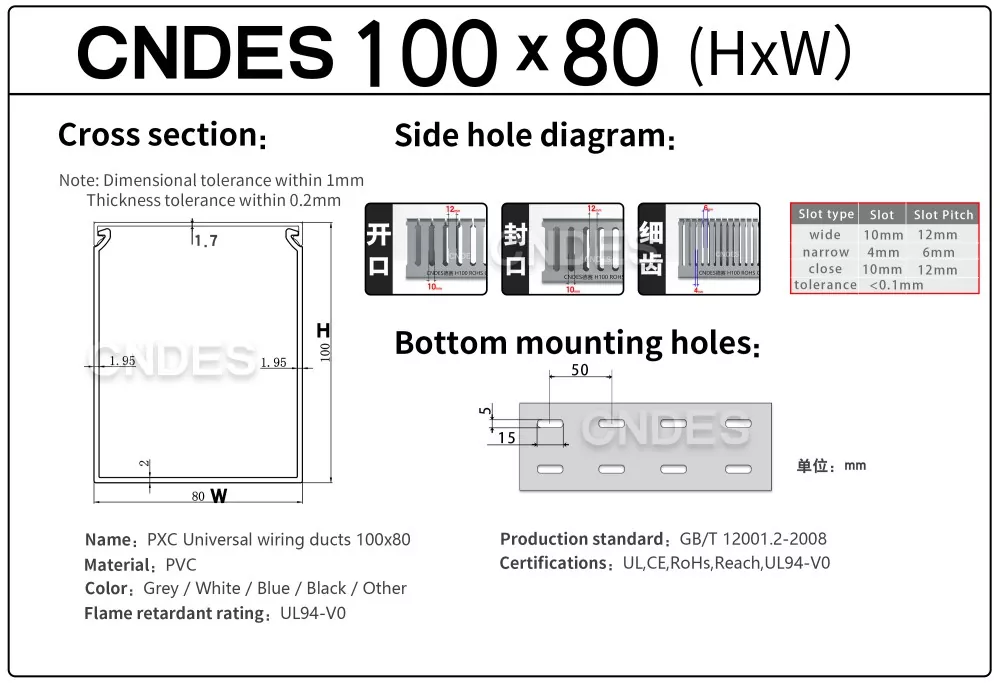 Наша гнучка щілинна ПВХ-канал 100 × 80 пропонує достатньо внутрішнього простору та гнучку структуру з щілинами, що дозволяє легко прокладати кабель, регулювати або розширювати його в польових умовах. Він ідеально підходить для застосувань, де використання простору та гнучкість є критичними, наприклад, для шаф керування, промислових панелей, систем автоматизації та електричних корпусів.