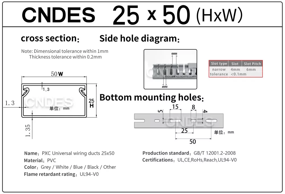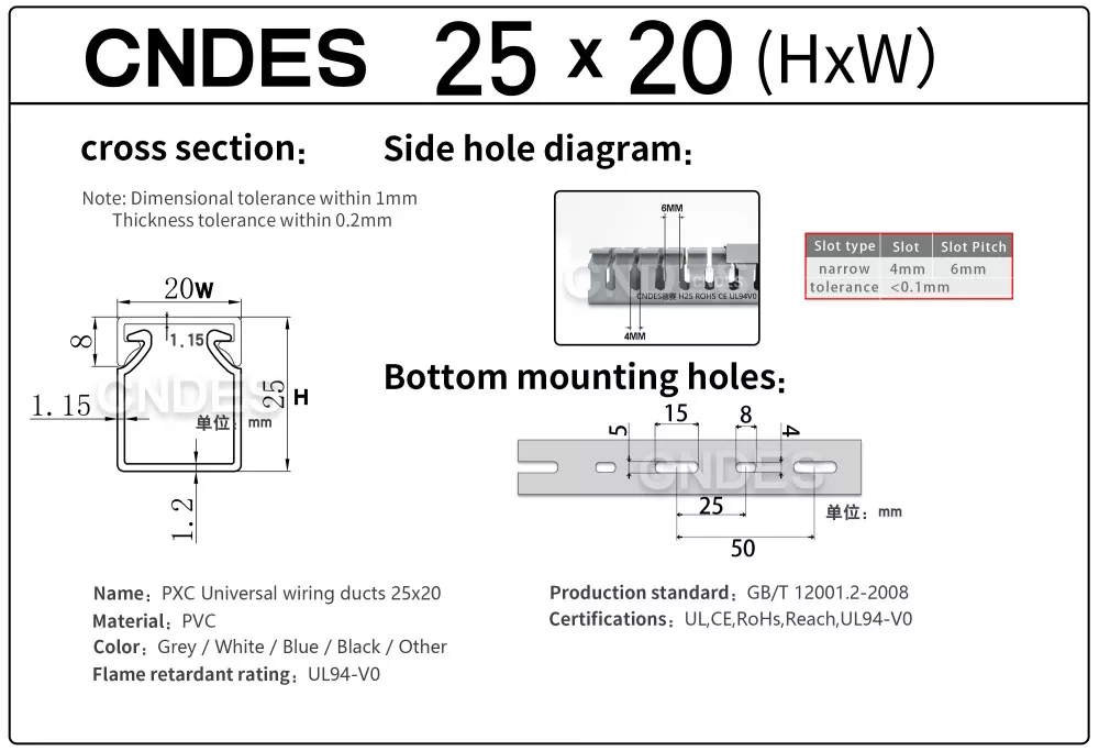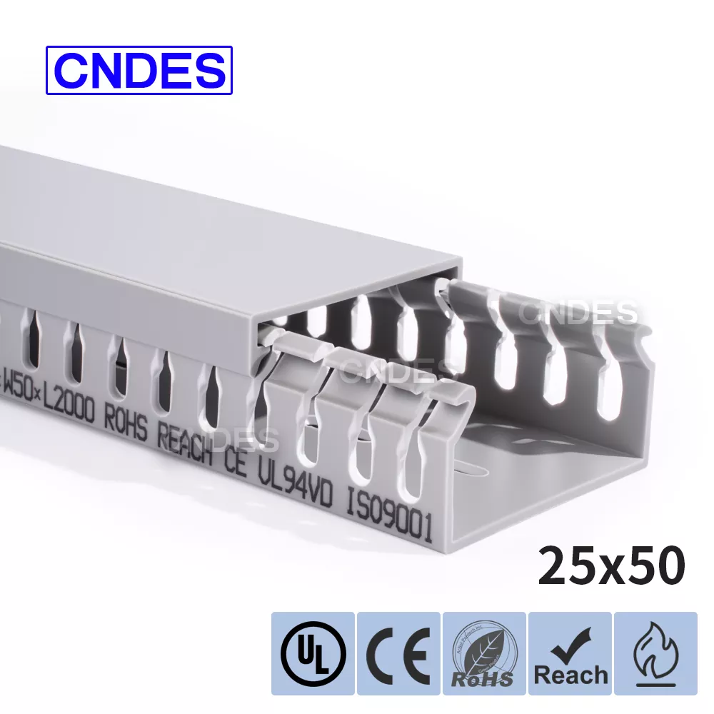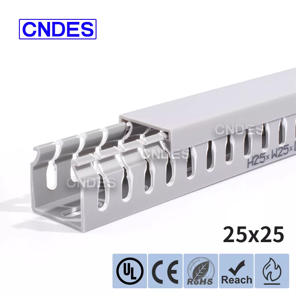Завдяки нашому незалежно розробленому високоточному обладнанню для штампування в поєднанні з унікальним сегментованим автоматичним процесом різання, CNDES може гнучко виробляти продукцію з різними специфікаціями, включаючи високоефективні повітроводи з ПВХ прорізами для панелі керування висотою 25 мм, що задовольняє різноманітні потреби клієнтів у шафах керування та електричних системах.
