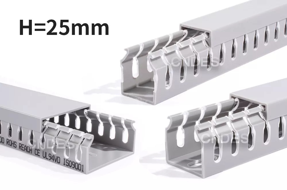 Цей виріб являє собою низьку прорізну трубу з ПВХ, призначену для організації, захисту та спрямування електричних кабелів усередині панелей керування. Висота 25 мм дозволяє встановити: