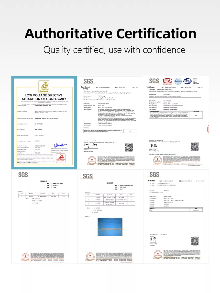 Суворий контроль якості для стабільної якості. У нас є чотири професійні інспектори якості, які працюють позмінно, щоб проводити онлайн-перевірки якості в режимі реального часу, гарантуючи, що кожна партія кабельних лотків з ПВХ має дуже узгоджені розміри, продуктивність і зовнішній вигляд.