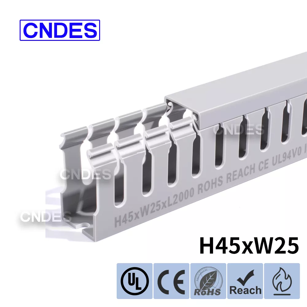 Як професійний виробник, ми хотіли б надати вам повітропровід CNDES із прорізами для дроту з ПВХ заввишки 45 мм. В тому числі 45*25, 45*33, 45*45.