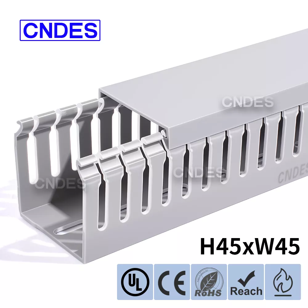 Цей якісний канал із щілинами для дроту з ПВХ заввишки 45 мм має дизайн із щілинами, який зберігає кабелі акуратними та організованими, запобігаючи сплутуванню та покращуючи естетику кабелів.