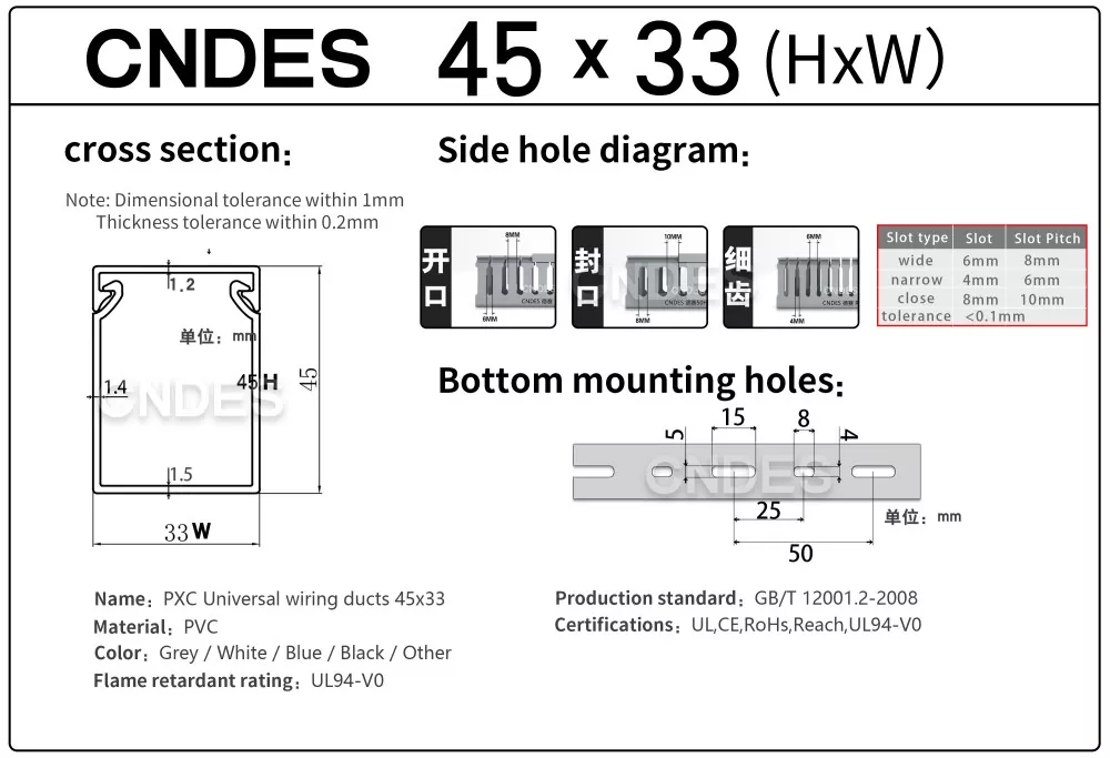 Представляємо спеціалізований кабельний повітропровід CNDES із прорізами з ПВХ заввишки 45 мм, ваше найкраще рішення для ефективної організації кабелів у різноманітних додатках. Незалежно від того, чи проектуєте ви нову електричну панель, удосконалюєте налаштування електропроводки вашої машини чи покращуєте електричну систему вашого будинку, наш повітропровід із ПВХ-дротом із прорізами по висоті забезпечує ідеальний баланс функціональності та естетичної привабливості.