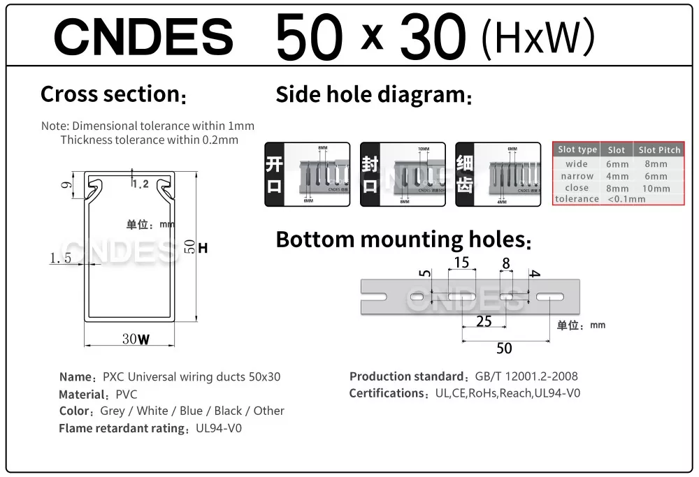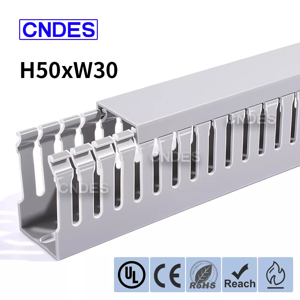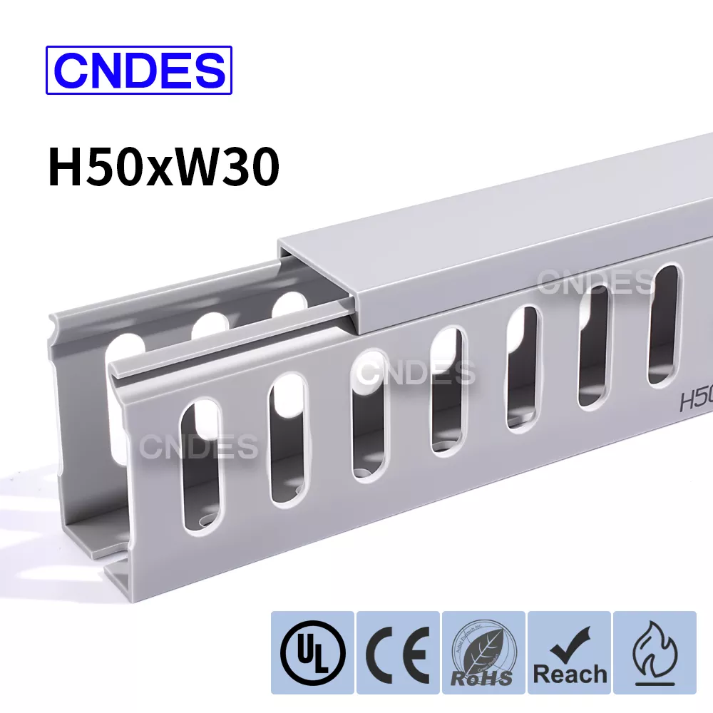 Кабельний кабельний канал із ПВХ із прорізами 50 × 30 від CNDES — це компактне та ефективне рішення для керування кабелями у вузьких місцях, таких як невеликі шафи керування, корпуси даних та розподільні коробки обладнання. Цей вузькопрофільний кабельний канал дозволяє установникам організовувати, розділяти та захищати кабелі, не займаючи зайвого простору на панелі.