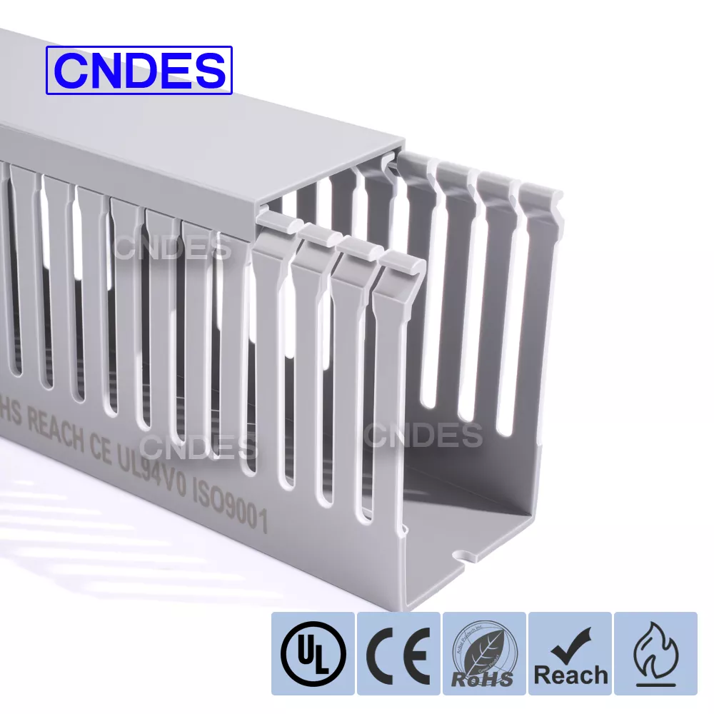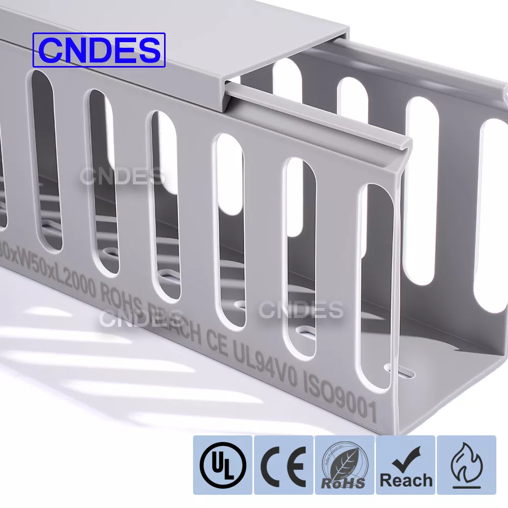 CNDES є професійним виробником кабельних лотків з ПВХ у Китаї. Тут ми представимо наш органайзер для кабельних панелей ПВХ із прорізами 80×50, де 80*50 мм представляє кабельний лоток висотою 80 мм і шириною 50 мм.