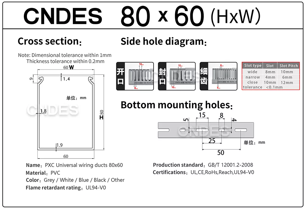 Тут ми представимо вам наші специфікації 80 * 60 мм, 80 * 60 Це являє собою висоту 80 мм і ширину 60 мм каналу проводки.